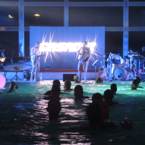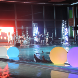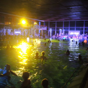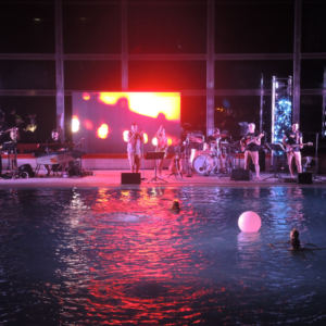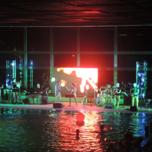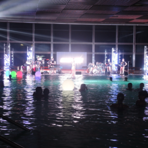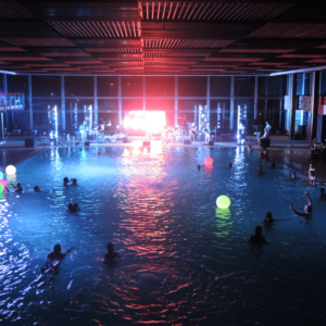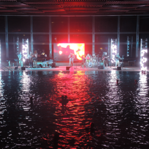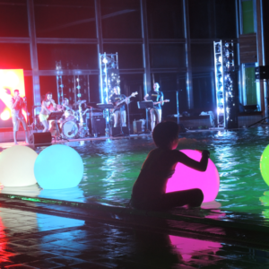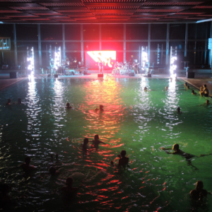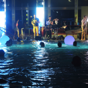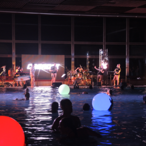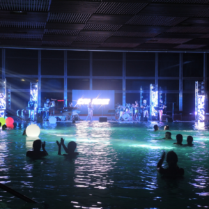 Non è facile organizzare un concerto in una piscina termale, sia per questioni logistiche che tecniche: potete immaginare il caldo e il tasso di umidità, e la pavimentazione di una piscina non è certo progettata per un’orchestra!