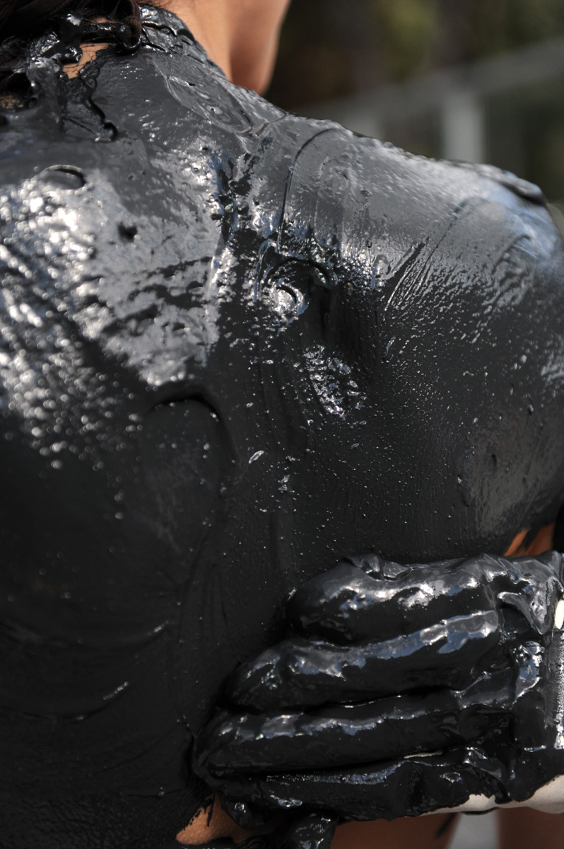 • горячая грязь, при температуре приблизительно 40 градусов